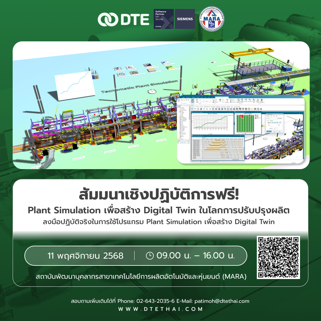 สัมมนาเชิงปฏิบัติการฟรี! ในหัวข้อ “Plant Simulation เพื่อสร้าง Digital Twin ในโลกการปรับปรุงผลิต”