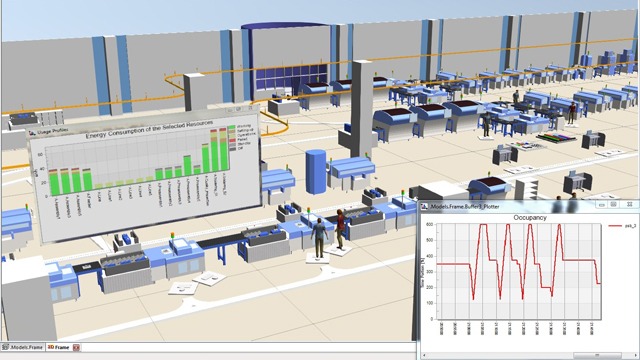 ด้วย Tecnomatix Plant Simulaton ใช้เทคนิคการจำลองเหตุการณ์แบบไม่ต่อเนื่อง และความสามารถในการวิเคราะห์ทางสถิติ เพื่อเพิ่มประสิทธิภาพการจัดการวัสดุ การขนส่ง การใช้เครื่องจักร และข้อกำหนดด้านแรงงาน ซึ่งช่วยให้คุณสามารถตรวจสอบปัญหาคอขวด ตรวจสอบวัสดุที่ขนส่ง และดูการใช้ทรัพยากรในช่วงเวลาต่างๆ ได้อย่างรวดเร็ว สำหรับทางเลือกในกระบวนการที่หลากหลาย การใช้เครื่องมือแบบสุ่มที่มีความสามารถเชิงวัตถุ และการสร้างแบบจำลอง 3 มิติ คุณสามารถเพิ่มความแม่นยำ และประสิทธิภาพในการผลิตของคุณไปพร้อมกับปรับปรุงปริมาณงาน และประสิทธิภาพของระบบโดยรวม